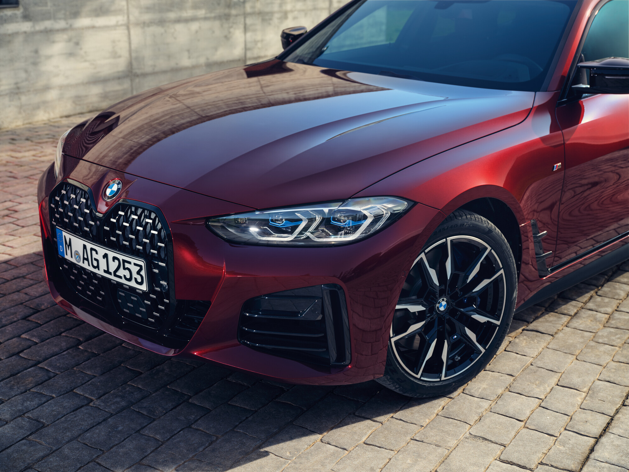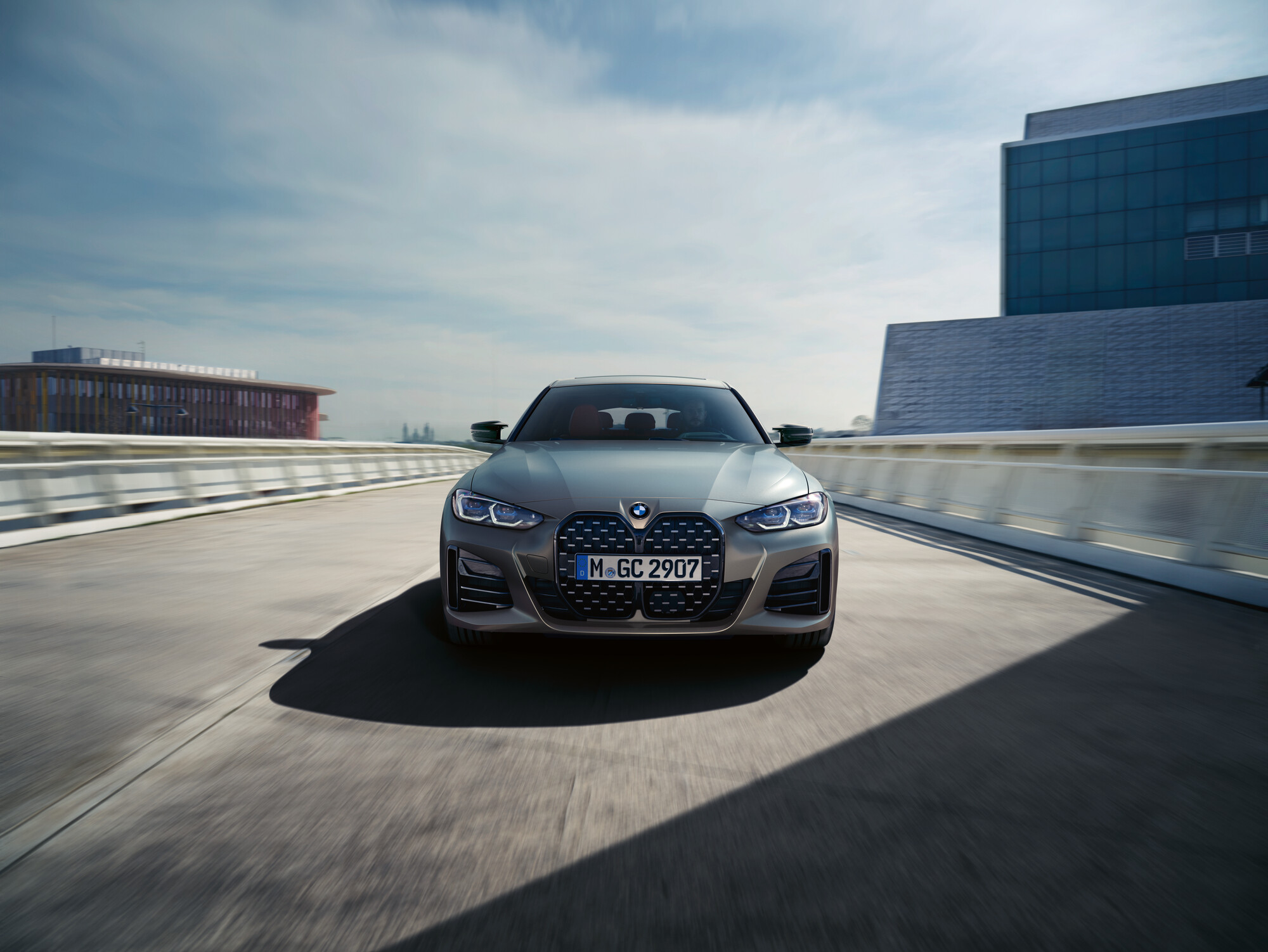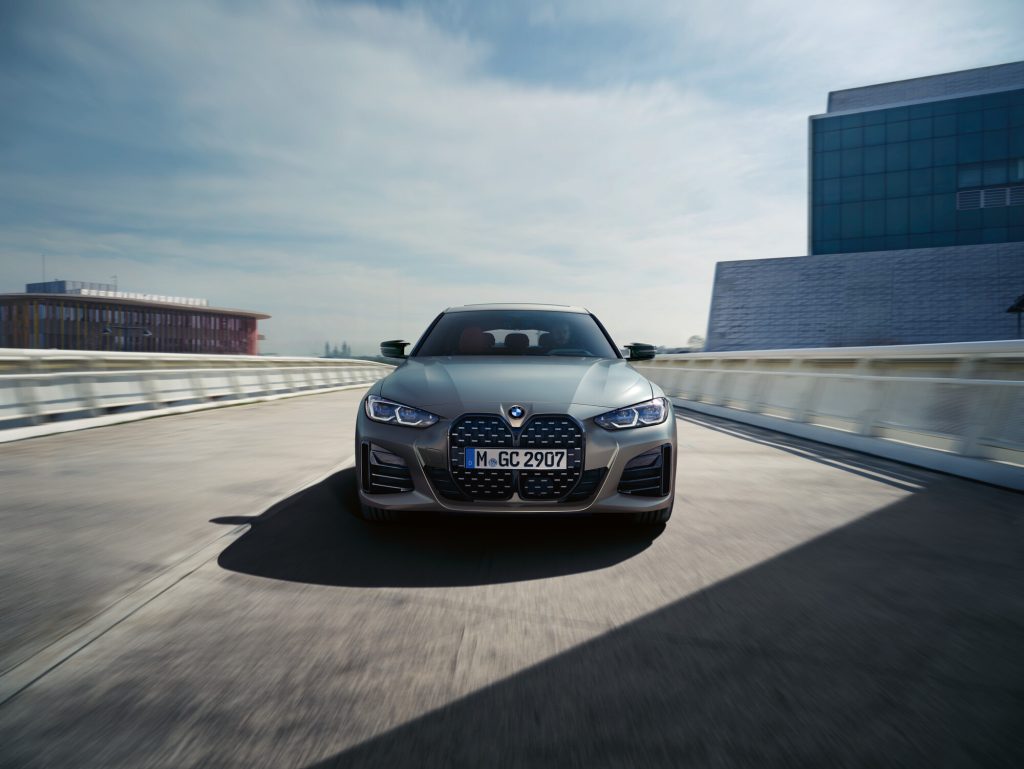 BMW 4-serie Gran Coupé presenterer en elegant, coupé-aktig linjeføring og et progressivt designspråk. Den brede nyregrillen med sin sekskantede gitterstruktur gir fronten en kraftig tilstedeværelse. Sammen med de flate frontlyktene og de store luftinntakene på sidene, former de det særegne ansiktet til Gran Coupé.