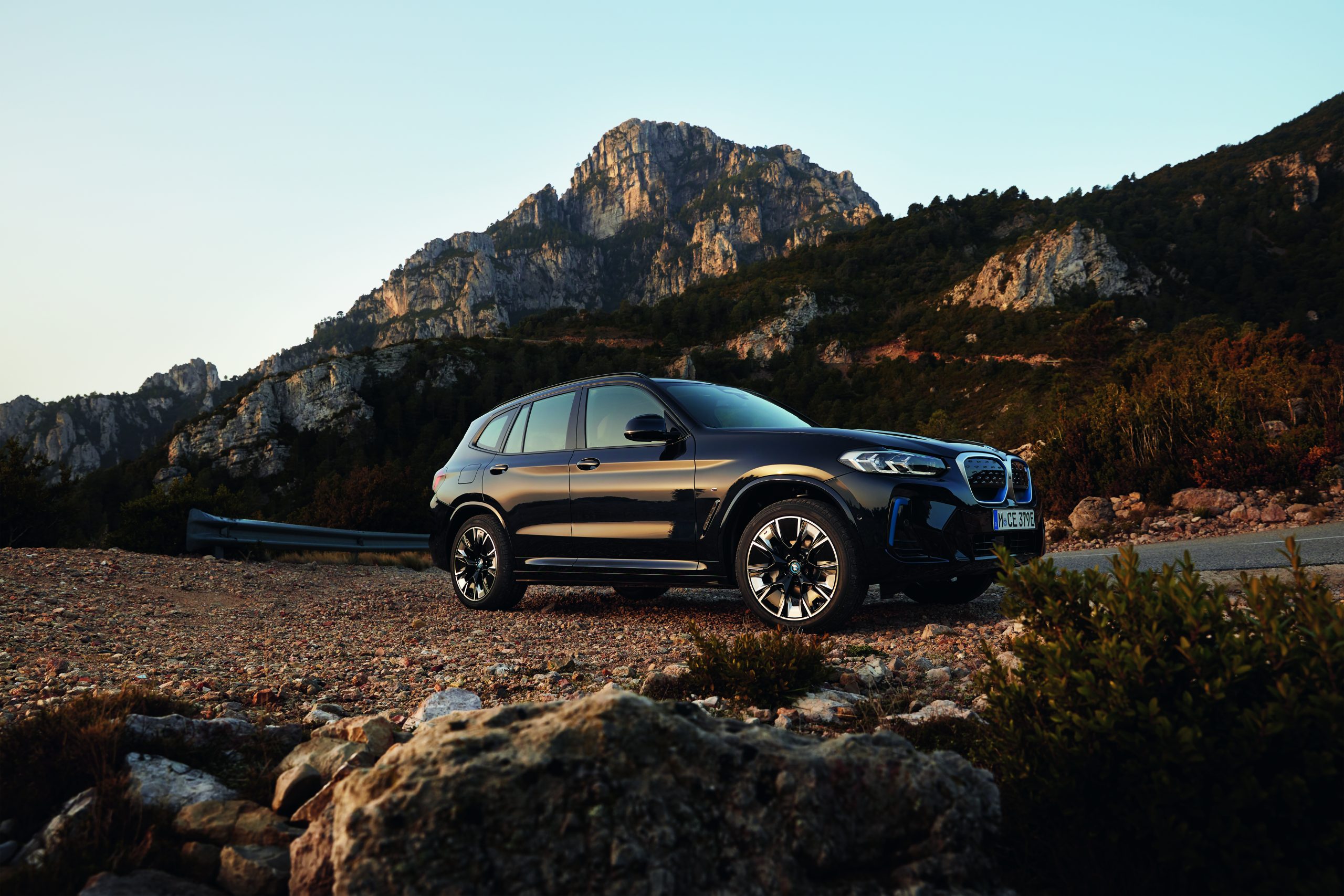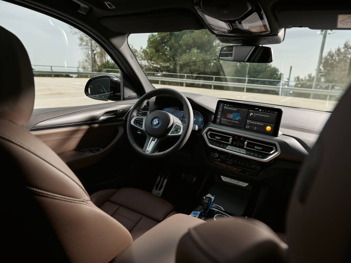 BMW iX3 er mer sporty enn noen gang takket være en standard M Sport-pakke. Aerodynamiske elementer og de blå detaljene får frem den elektriske drivlinjens karakter. Korte eller lange reiser - med en rekkevidde på opptil 460 km* og et strømforbruk på 18,5 kWt/100 km*, er den nye BMW iX3 ideell for enhver strekning.