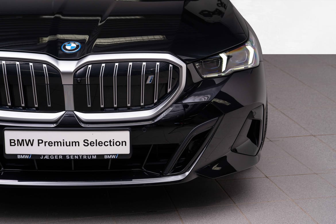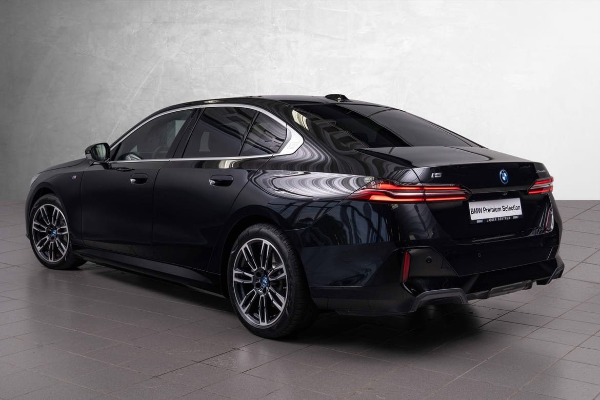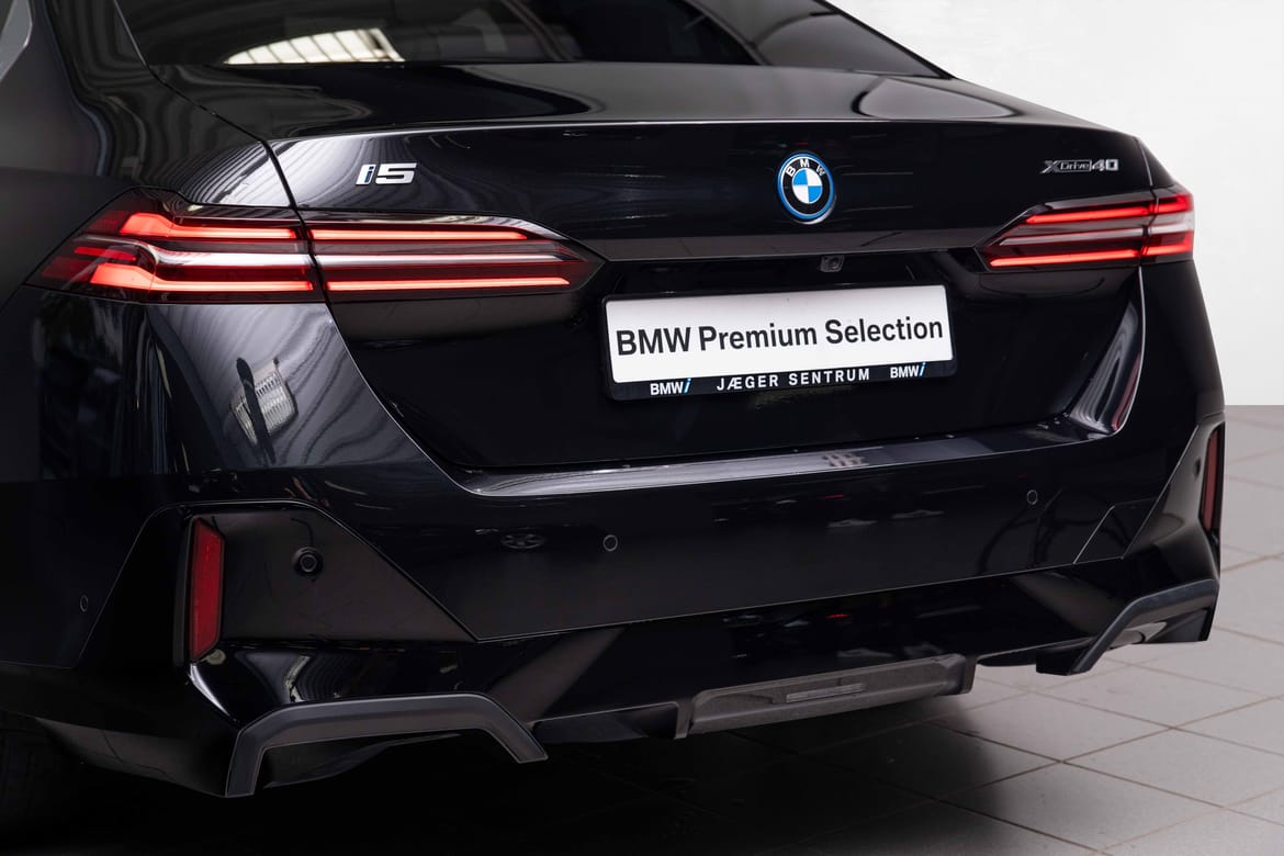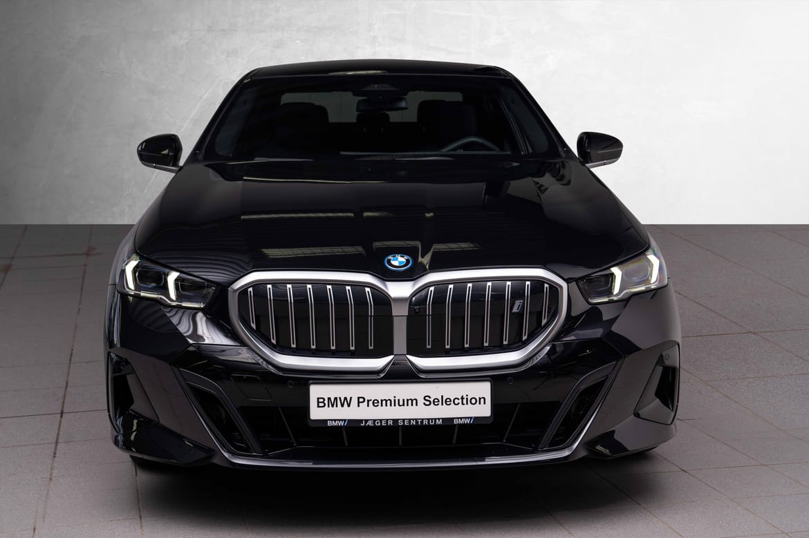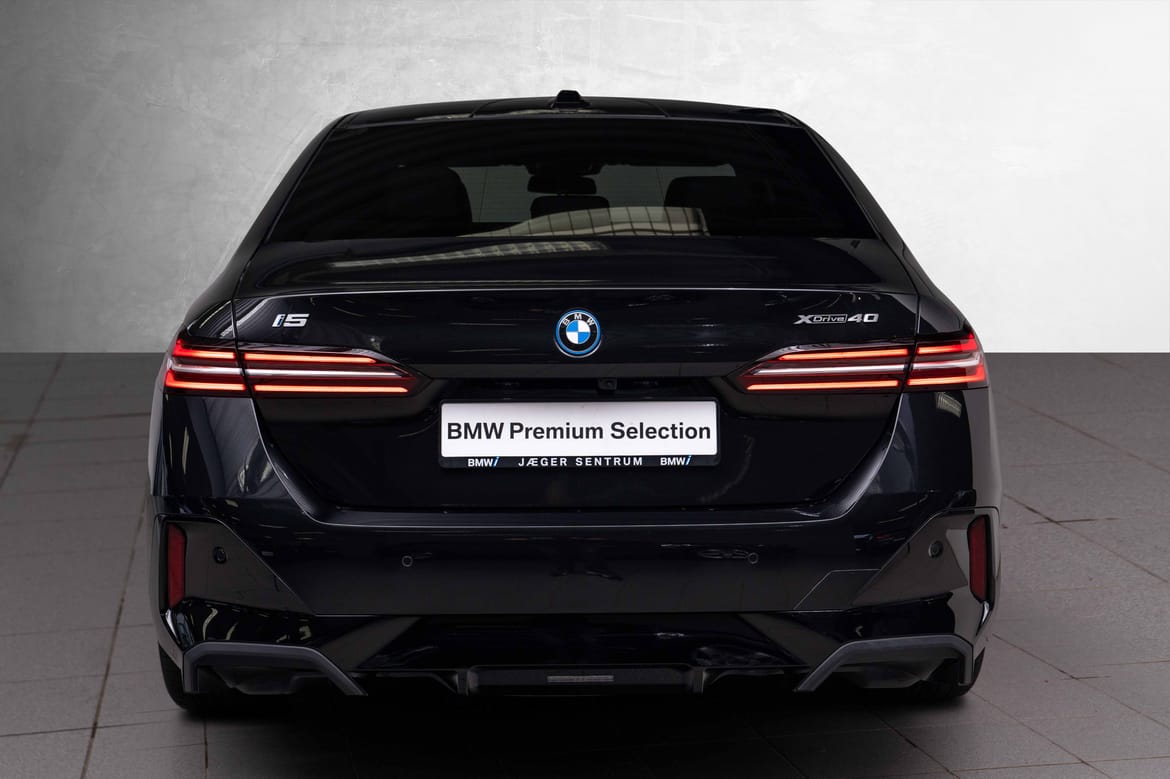 Nydelig og nesten ny i5 xDrive40 Sedan, i den utrolig flotte Safirsort metallic fargen, med sort interiør.