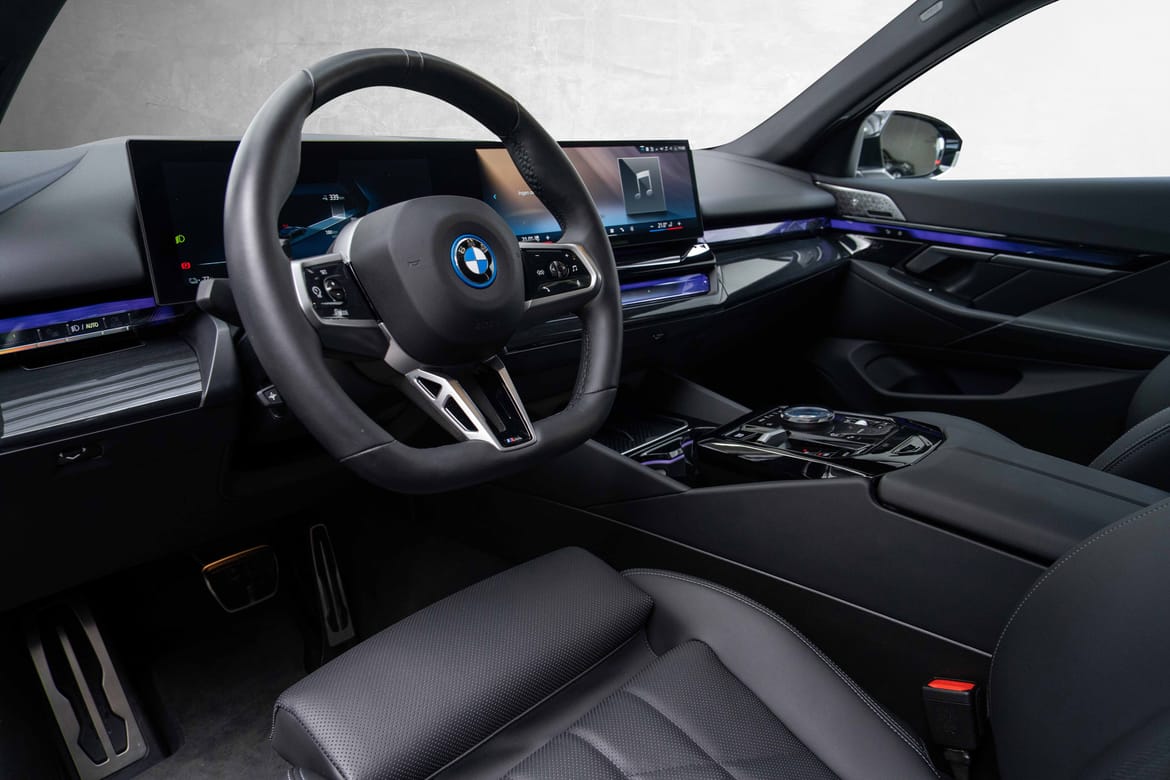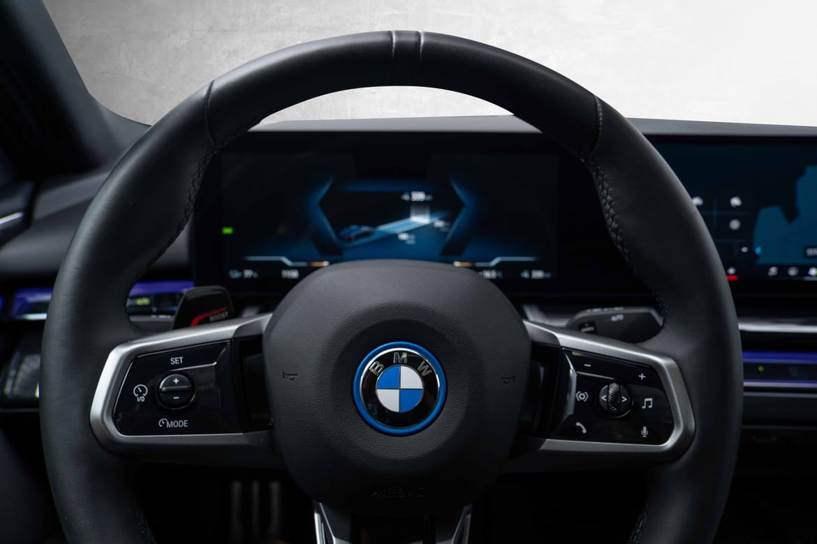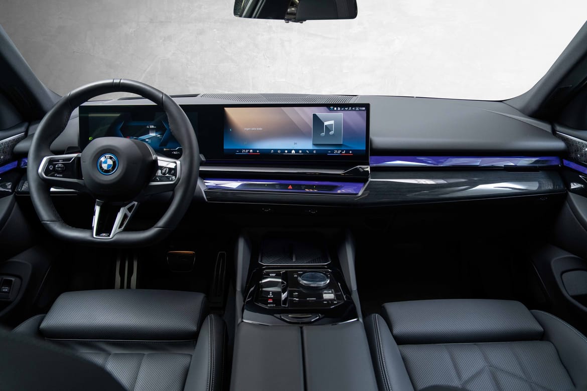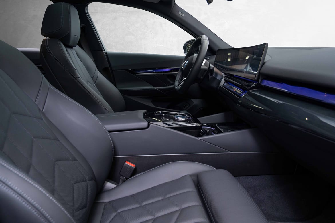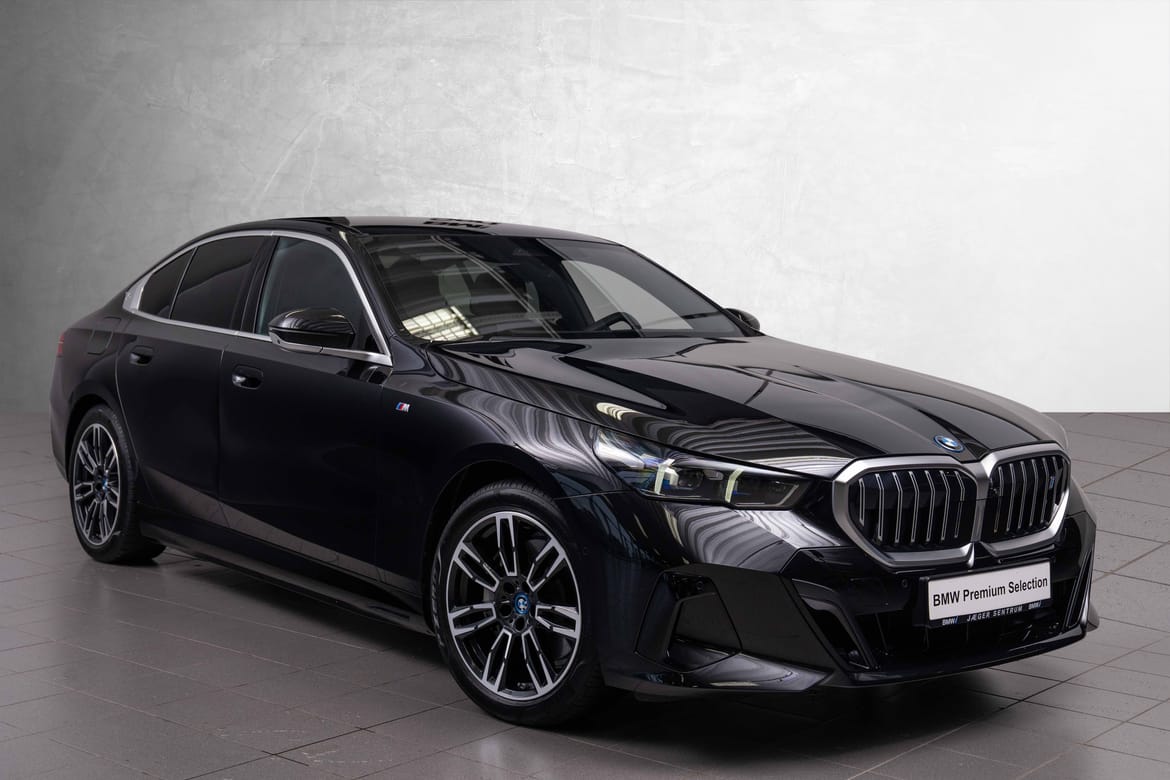 Nydelig og nesten ny i5 xDrive40 Sedan, i den utrolig flotte Safirsort metallic fargen, med sort interiør.