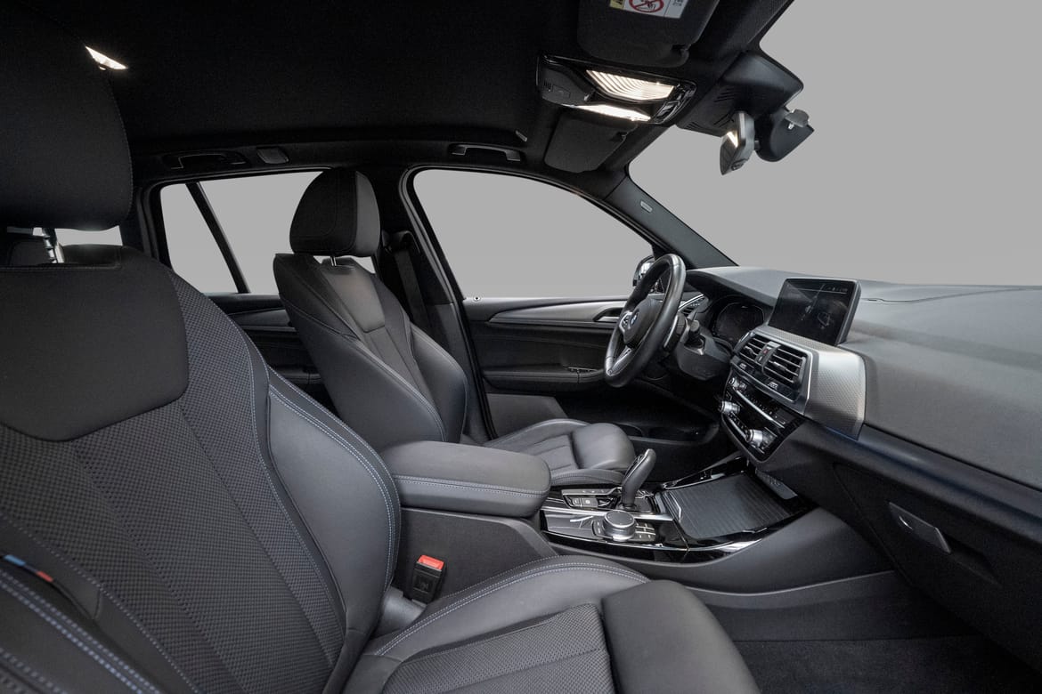 BMW X3 xDrive30e 2021-modellen leveres med et førsteklasses interiør, med materialer som skinn, moderne detaljer og et stilfullt design. Den romslige kabinen tilbyr både komfort og fleksibilitet, og de ergonomiske setene gir utmerket støtte under lange kjøreturer. Med et stort bagasjerom får du også god plass til både ferieturen og daglige behov.
